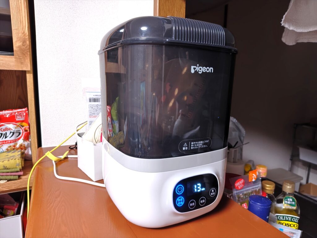 - 消毒後に乾燥までできるので、すぐに使わない哺乳瓶も衛生的に保管できる